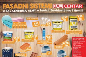 Akcija u Bau centrima ALMY- Akcija na fasadne sisteme u Bau centrima ALMY u Zenici, Zavidovićima i Nemili. Izdvajamo: EPS F60 5cm – 3,85KM/m2 BAUMY –...