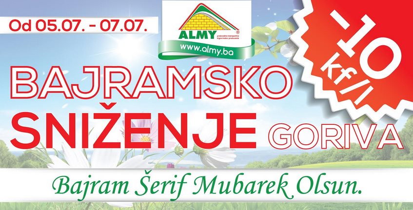 Almy – bajramsko sniženje goriva i autoplina – Bajramsko sniženje na benzinskim pumpama kompanije Almy u Zenici i Zavidovićima od -10kf/l na sve...