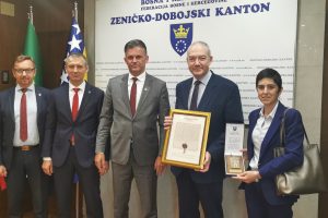 Premijer Zeničko-dobojskog kantona Mirnes Bašić, s ministrom za obrazovanje, nauku, kulturu i sport Spahijom Kozlićem i ministrom za prostorno uređenje, promet...