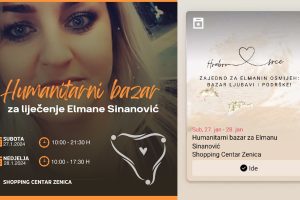 Ove subote, 27.1.2024.godine od 10 do 21:30 sati i u nedjelju 28.1.od 10 do 17:30 sati, Udruženje Hrabro srce organizuje humanitarni bazar za liječenje Elmane...