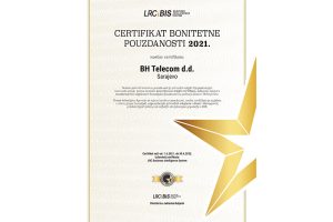 Već drugu godinu zaredom, BH Telecom je nosilac certifikata bonitetno pouzdane kompanije, prema metodologiji najveće domaće bonitetne agencije LRC. Certifikat...