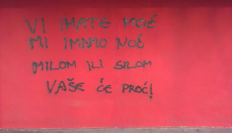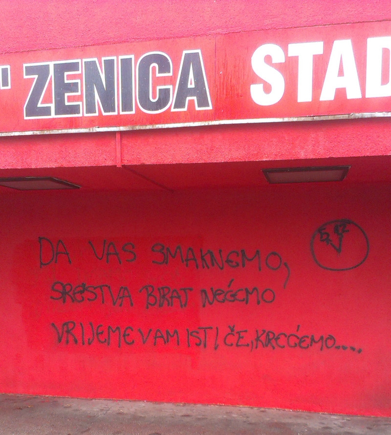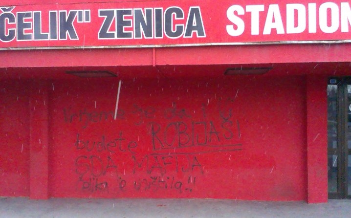 Novi grafit nepoznatog autora osvanuo je jutros na zidu pored službenog ulaza u zenički stadion “Bilino polje”. Ovog puta piše: “Vrijeme je...