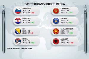 U izvještaju Reportera bez granica i po njihovom Svjetskom indeksu medijskih sloboda (World Press Freedom Index) za 2022. godinu, Bosna i Hercegovina se nalazi...
