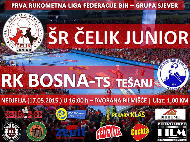 Sutra će seniorska ekipa škole rukometa “Čelik Junior” u posljednjem kolu Prve rukometne lige Federacije BiH (sezona 2014/15) ugostiti rukometaše...