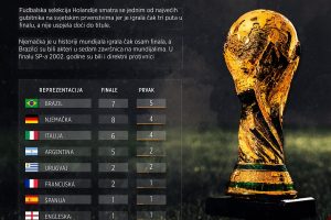 INFOGRAFIKA: Brazil najtrofejniji, Holandija najveći gubitnik svjetskih prvenstava u nogometu – Izuzevši period Drugog svjetskog rata, do sada je...