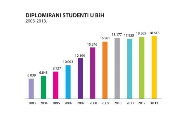 Broj diplomiranih studenata u BiH utrostručio se od 2013. godine do danas, no u zadnje četiri godine brojka stagnira, i kreće se oko 18.000 studenata godišnje...
