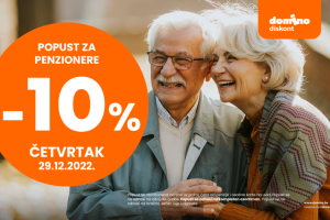 Dragi penzioneri, četvrtak je vaš dan za uštede jer samo u Domino diskontu možete ostvariti 10 % popusta na ukupnu kupovinu. Popust se odnosi na CJELOKUPAN...