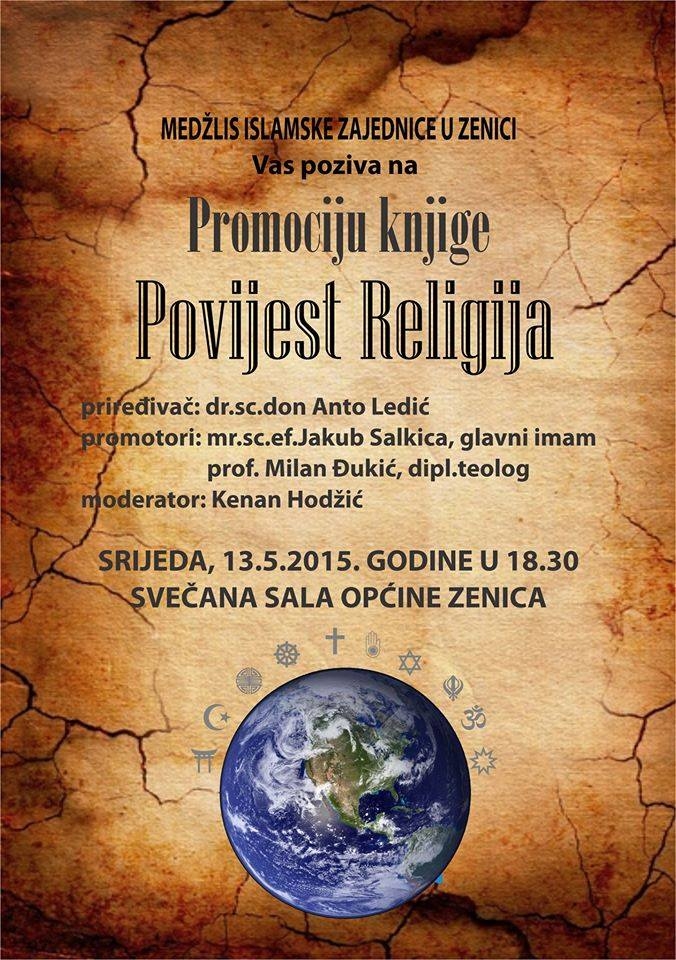 SRIJEDA, 13.05. U 18:30 – SVEČANA SALA OPĆINE ZENICAPriređivač: dr.sc.don Don Anto LedićPromotori: mr.sc.ef. Jakub Salkica, glavni imamprof. Milan Đukić...