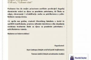 Donatorsko veče za osobe sa poteškoćama u razvoju u Cabaret Clubu – Danas, sa početkom od 17:00, u Cabaret clubu (zgrada Bosanskog narodnog pozorižta...