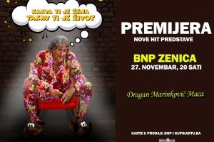 Nakon raspodane prve predstave 27. novembra u Zenici Dragan Marinković Maca će nastupiti ponovo u Bosanskom narodnom pozorištu 16. decembra u 20 sati. ’KAKVA...