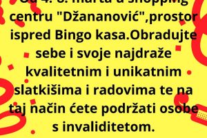 Humanitarni Bazar od 4. do 8. marta u shopping centru Džananović- Od 4. do 8. marta Udruženje “Pogled” organizuje Humanitarni Bazar u shopping...