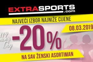 Savršen poklon za dragu damu čeka vas u najbližoj Extra Sports radnji. Povodom praznika žena, 8.3. odobravamo 20% popusta na kompletan ženski asortiman...