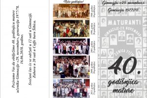 Bivši učenici Srednje tehničke škole „Đuro Salaj“ Zenica, generacija koja je pohađala školu od 1971. do 1975. godine, okupit će se na tradicionalnom času...