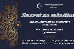 Mreža mladih vas poziva na Susret sa mladima Muftije zeničkog hfz. dr. Mevludin Dizdarević i glavnog imama mr. Jakub ef. Salkice… Džemat Novo Radakovo...