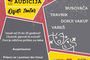 Audicija za mlade glumce iz Busovače, Travnika, Vareša i Donjeg Vakufa- Studio Tetar je objavio javni poziv za mlade glumice i glumce iz Busovače, Travnika...