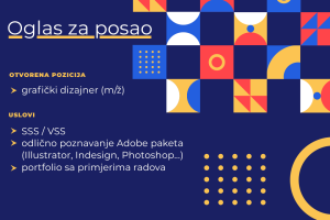 Oglas za posao: Grafički dizajner- Almy d.o.o. Zenica objavljuje konkurs za prijem u radni odnos: POZICIJA: Grafički dizajner (m/ž) LOKACIJA: Zenica BROJ...