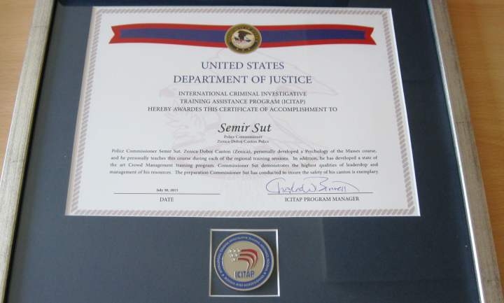 Policijskom komesaru Semiru Šutu je u Sarajevu, od strane direktora ICITAP-a u Bosni i Hercegovini (Međunarodni program Ministarstva pravde SAD za obuku i...