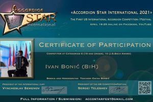 Učenici Srednje muzičke škole u Zenici, Ivan Bonić i Adi Kobilica, iz klase prof. Emine Berbić, učestvovali su na prvom online takmičenju “Accordion Star...