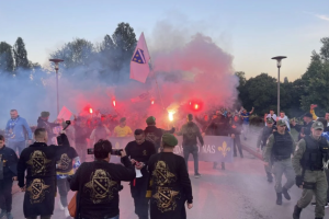 Pripadnici navijačke grupe Ljuti Krajišnici, u korteu su krenuli na stadion Bilino polje u Zenici gdje će Zmajevi igrati utakmicu Lige nacija protiv Crne Gore...