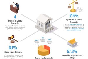 Tokom 2021. godine u Bosni i Hercegovini doneseno je 147 pravosnažnih presuda za krivična djela korupcije, od čega se svega četiri odnose na visoku korupciju...