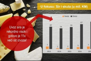 BiH izvozi jeftine, a uvozi skupe mliječne proizvode – deficit 66,5 miliona KM – Sa izvozom koji je u 2017. bio za oko 23.000 tona veći od uvoza...