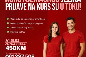 UPIS U TOKU! KURSEVI NJEMAČKOG JEZIKA (A1, B1, B2) Želite naučiti njemački jezik od samog početka ili unaprijediti postojeće znanje? AVS Agencija organizuje...