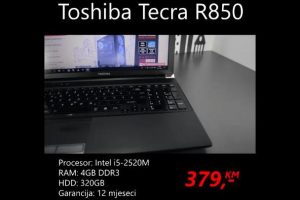 Laptop Toshiba Tecra R850 sa top cijenom 379,-KM! Toshiba Tecra R850 je jedan od poslovnih laptopa zasnovanih na Sandy Bridgeu na tržištu. To je 15.6in model...