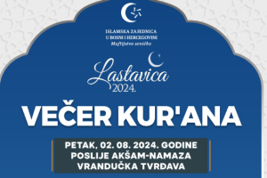 U sklopu programa Vjersko-kulturne manifestacije ” Lastavica 2024.″, u petak, 02. augusta 2024. godine u Vrandučkoj tvrđavi održati će se ”Večer Kur’ana”...