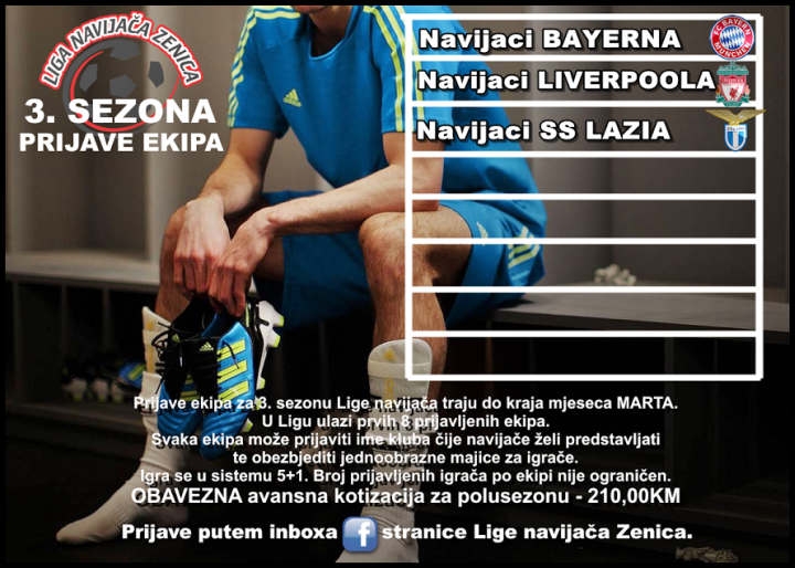 Počele su prijave za 3. sezonu Lige navijača Zenica i trajat će do kraja ovog mjeseca. Ove sezone planirano je da u okviru Lige učestvuje maksimalno 8 ekipa...