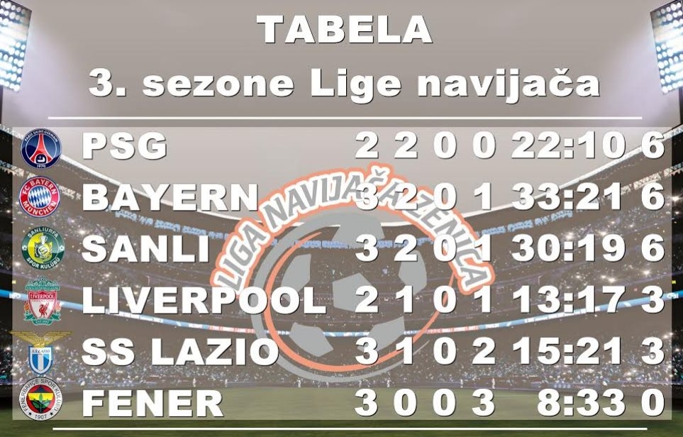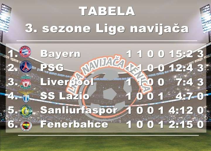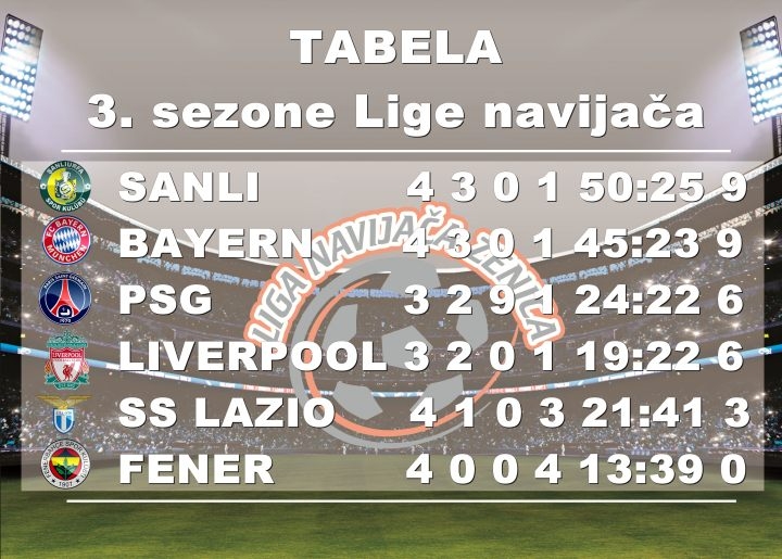 Proteklog vikenda odigrano je i 3. kolo Lige navijača u kojem nije bilo većih iznenađenja. Ekipe navijača Bayerna i Sanliurfaspora savladale su protivnike...