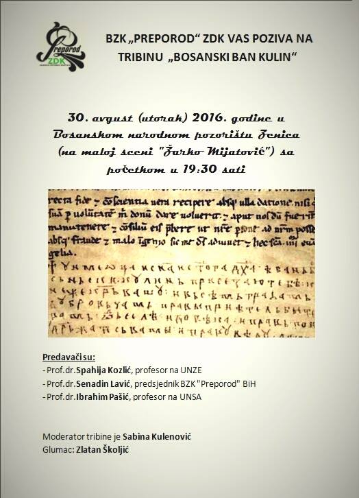 Mala scena BNP: tribina Bosanski ban Kulin – večeras u 19.30h – Pozivamo Vas na tribinu “Bosanski ban Kulin” koja će se održati 30...