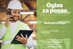 Oglas za posao: Mašinski inžinjer- Almy d.o.o. Zenica objavljuje konkurs za prijem u radni odnos: POZICIJA: Mašinski inžinjer LOKACIJA: Zavidovići BROJ...