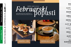 FEBRUARSKI POPUSTI U MOTELU ALMY! Kako bismo i u ovom mjesecu unijeli dodatnu radost, za Vas smo pripremili posebne februarske popuste! Naime, od 01.02.2025...