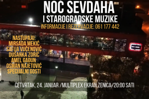 U četvrtak, 24. januara Noć sevdaha i starogradske muzike u Multiplexu “Ekran” Zenica Na veliko zadovoljstvo zeničke publike, Multiplex “Ekran” Zenica će u...
