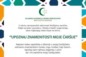 U okviru ramazanskih aktivnosti Muftijstvo zeničko, Odjel za brak i porodicu i Mreža mladih organiziraju izbor najboljeg video klipa na temu: “UPOZNAJ...