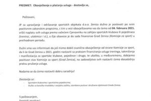 Javno preduzeće za upravljanje i održavanje sportskih objekata Zenica obavijestilo je jučer i pismenim putem sportske kolektive te pojedince da će od danas...