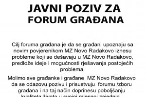 Poziv na zbor/forum građana MZ Novo Radakovo – Pozivamo sve mješane Mjesne zajednice Novo Radakovo da se odazovu formu/zboru građana koji će se održati u...