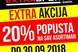 Extra Sports: extra akcija – 20% popusta na kompletan asortiman – U Extra Sports radnjama je do 30.09.2018. godine aktuelna Extra akcija. EXTRA...