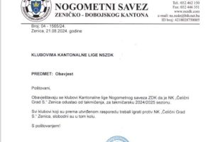 Nakon što smo objavili početak takmičarske sezone, 2024/2025.godina, u Kantonalnoj ligi Zeničko-dobojskog kantona (ZDK), danas smo dobili dopis u vezi...