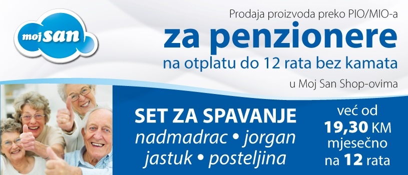 Dragi penzioneri, Moj San Vam nudi mogućnost nabavke kvalitetnih proizvoda za spavanje za Vas i Vaše najmilije, bez provizija, na rate putem fonda PIO. Jedna...