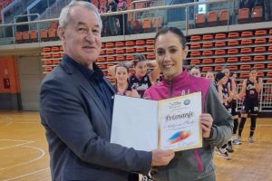 Pred početak nedjeljne utakmice Regionalne WABA U15 lige, KŽK Čelik – ŽKK Budućnost, mala svečanost na terenu za dodjelu priznanja Aldijani Škaljo, trenerici...