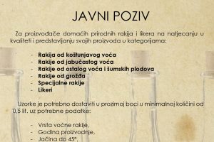 JAVNI POZIV Za proizvođače domaćih prirodnih rakija i likera na natjecanju u kvaliteti i predstavljanju svojih proizvoda u kategorijama: – Rakija...