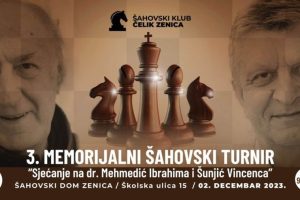 Šahovski klub (ŠK) Čelik je ove subote, 2. decembra, domaćin 3. Memorijalnog šahovskog turnira „Sjećanje na Ibrahima Mehmedića i Vincenca Šunjića“...
