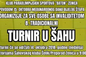 Turnir u šahu povodom dana slijepih osoba – Udruženje gradana Klub paraolimpijskih sportova „BATON“ Zenica, povodom 15. oktobra međunarodnog dana bijelog...