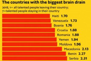BiH u svjetskom vrhu po “odlivu mozgova” – Časopis “The Economist” objavio je na Instagramu infografiku prema kojoj Bosna i...