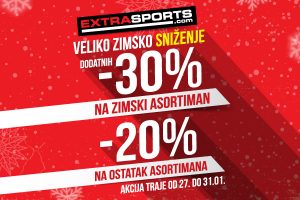 Iskoristite veliko zimsko sniženje u Extra Sports radnjama! U periodu od 27. do 31. januara spremili smo dodatnih 30% popusta na već snižen zimski asortiman i...