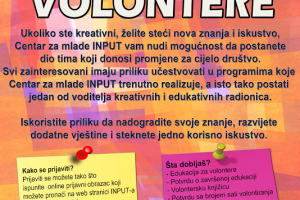 INPUT: poziv za volontere – Školske obaveze su iza vas, a već vam fali aktivnosti koje će upotpuniti vašu ličnost i ispuniti vaše slobodno vrijeme, a...