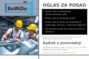 Kompanija BoWiDo d.o.o. je osnovana 2021. godine i izvozno je orjentisano. Cjelokupnu proizvodnju stolarije plasiramo na tržište EU. Našakompanija je...