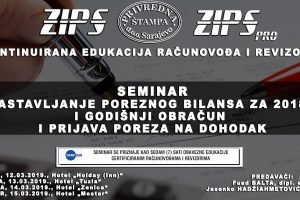 Kontinuirana edukacija računovođa i revizora: Peti ciklus ZIPSpro seminara 18. decembra u Zenici – U okviru Kontinuirane profesionalne edukacije...