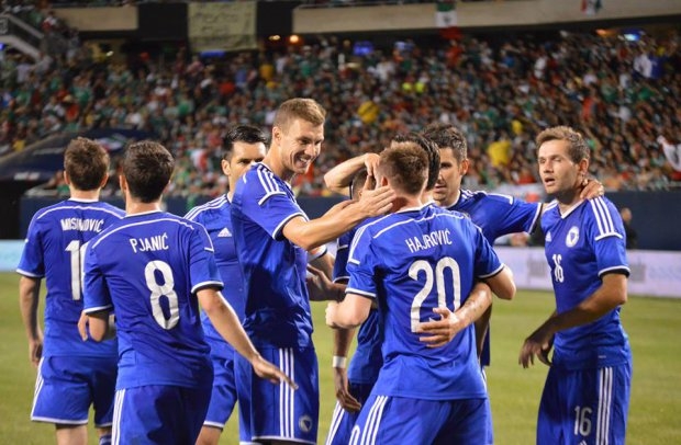 Selektor reprezentacije Bosne i Hercegovine Faruk Hadžibegić, direktor Zvjezdan Misimović, trener Almir Seferović i igrači Adrian Leon Barišić, Amar Dedić...